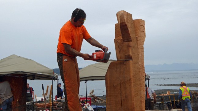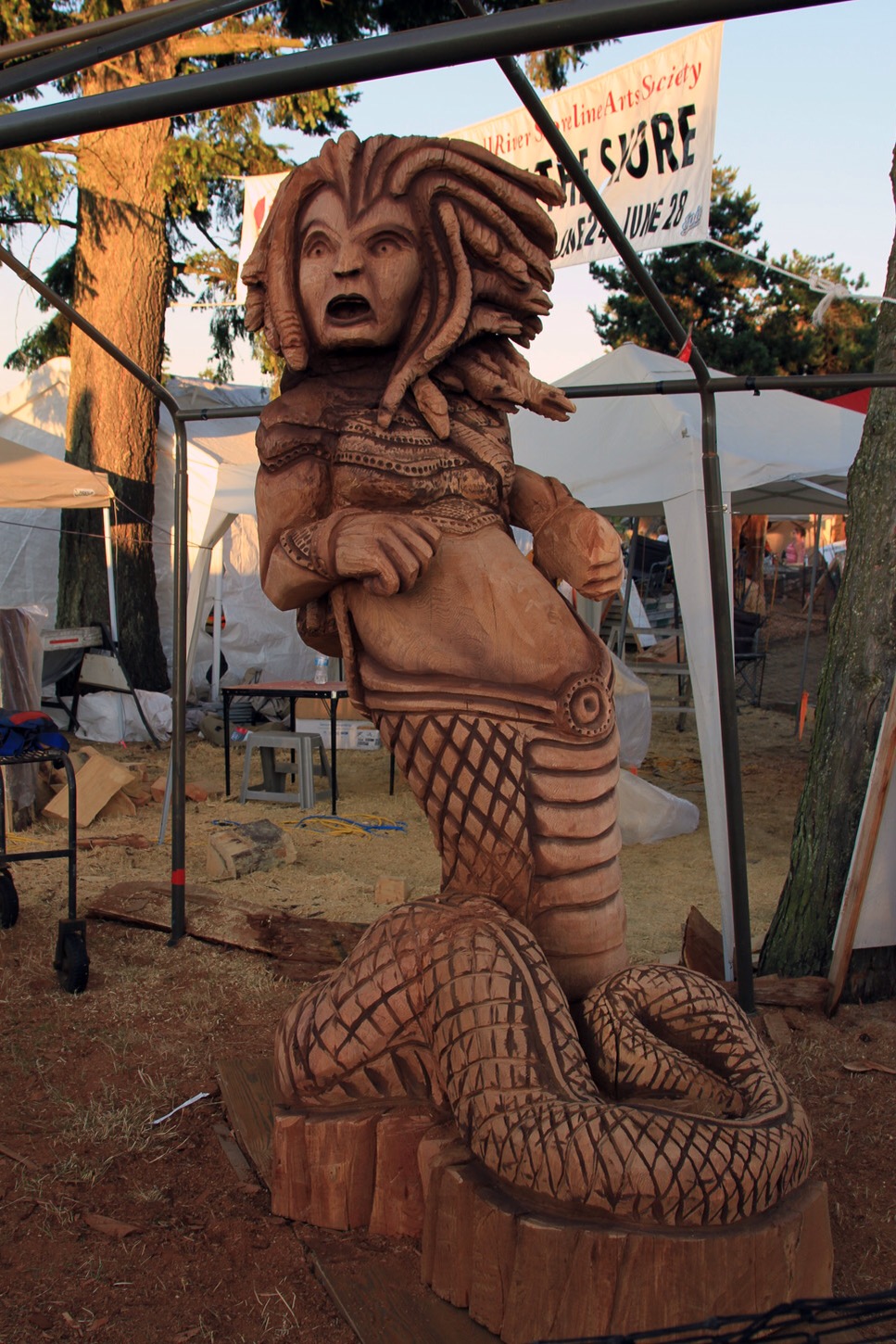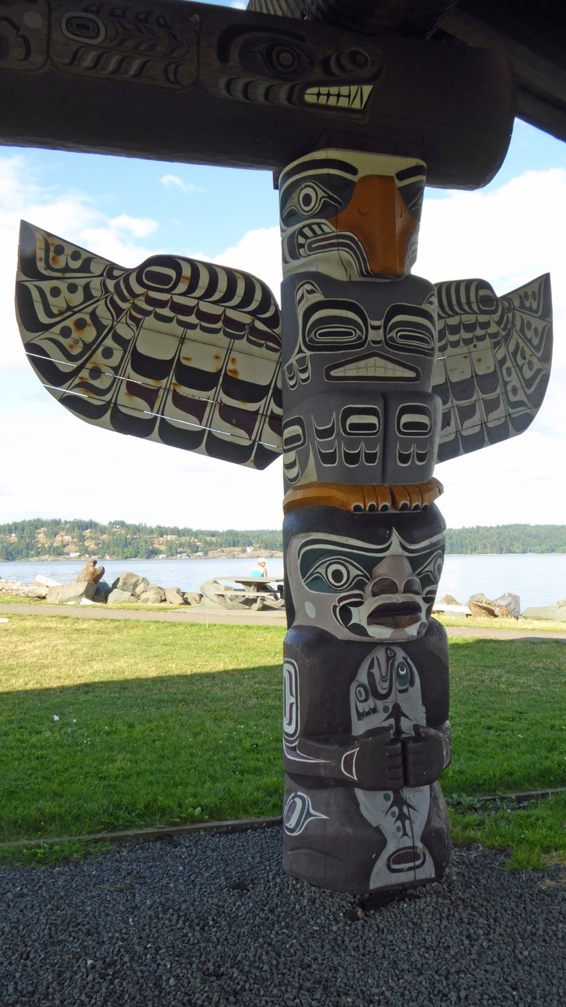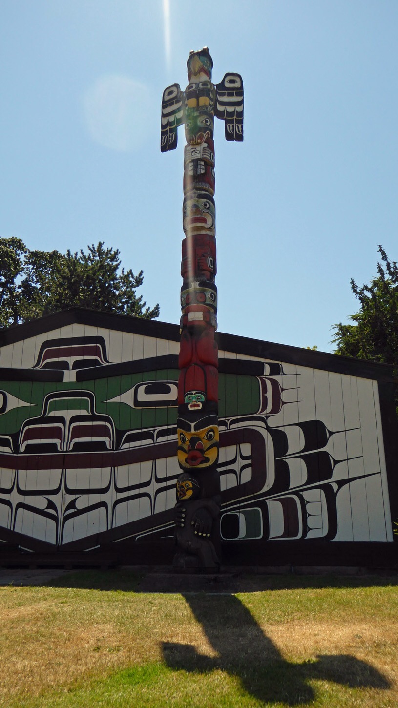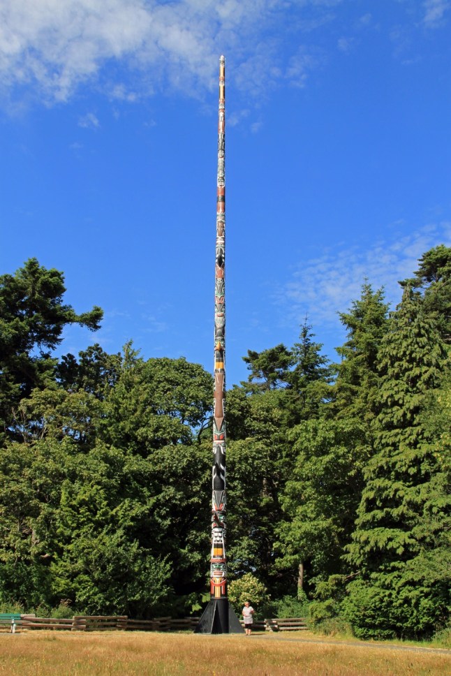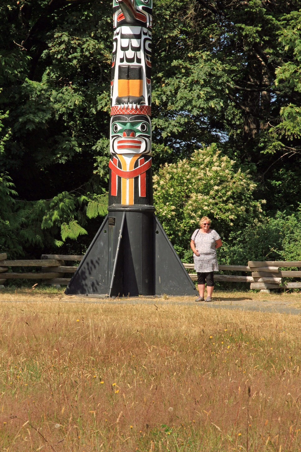 Then we followed the marine drive stopping to view the tallest totem pole in North America. It was made out of one tree from the far north of Vancouver Island. You can see how tall it is as I look so tiny next to it !