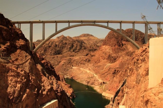 Then we turned a corner in the road and couldn’t believe the change! There were deep canyons and different coloured rocks as we travelled down to Hoover Dam. This was towards the end of the Grand Canyon which is over a hundred miles long. and there was the Colorado River again.