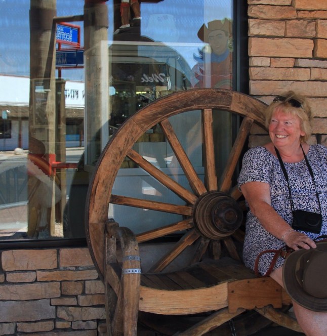 Thank goodness for air conditioning in car and hotel. We went to old downtown Scottsdale this morning. It’s where Phoenix the town started. We walked under verandas and in the shade but kept diving into shops to cool down. This heat is going to be here for the next week so I will have to live with it,especially in Death Valley. 112f today