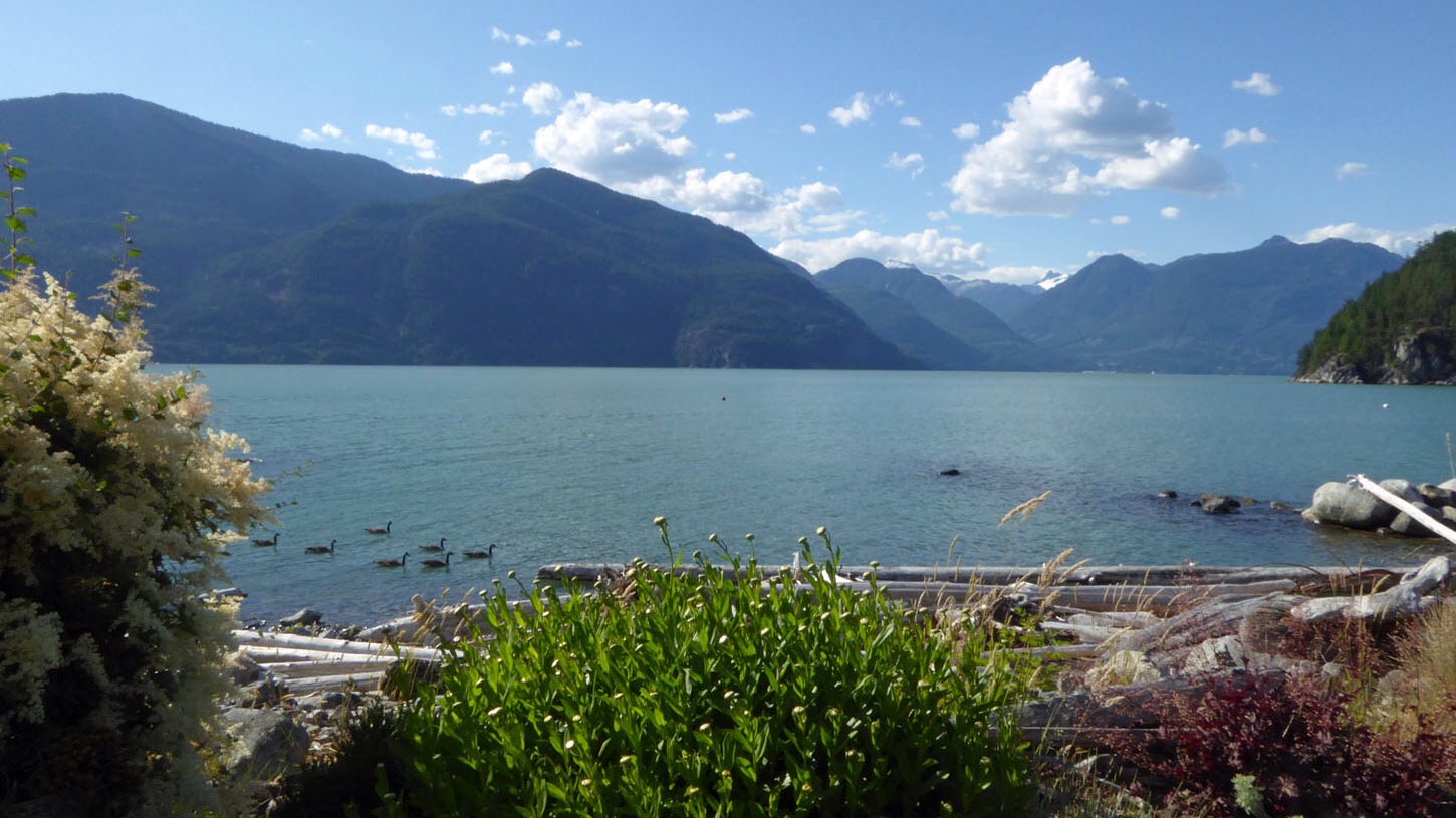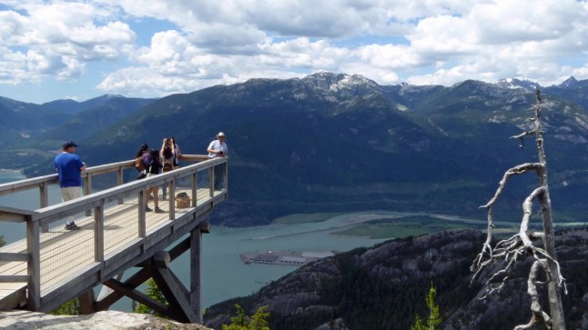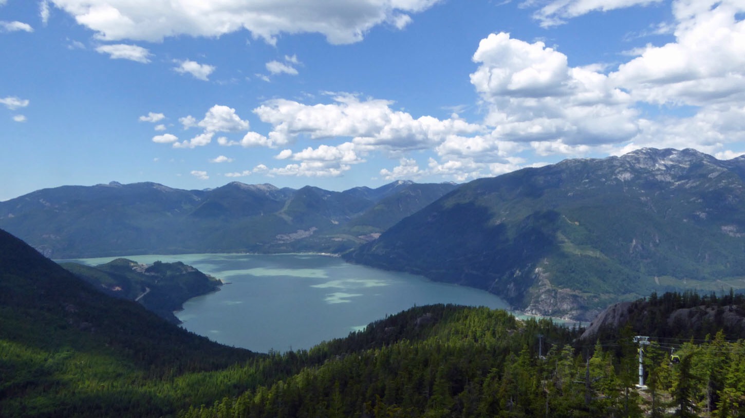 Today we had a lazy breakfast and drove into Squamish to the gondolas. We were whisked up to the top viewing platform 3000 feet above the town. This is the view we saw.