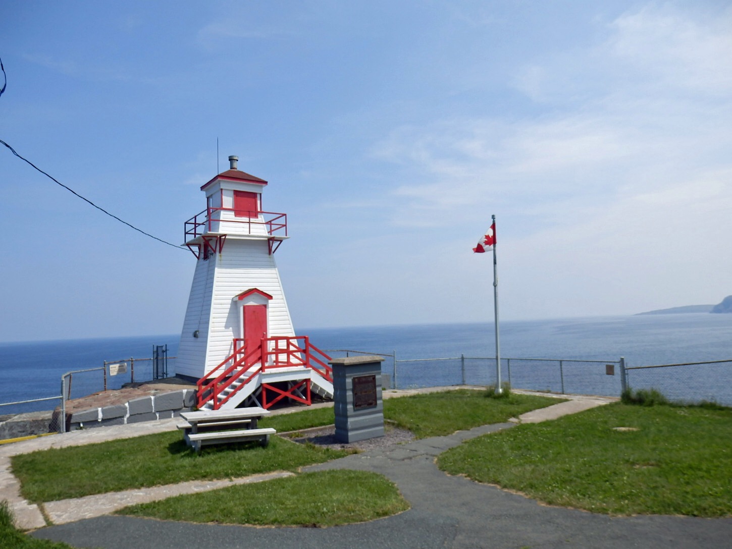 It was still misty and not too clear over the sea so we waited for a while for the sun to burn through. We asked at the tourist Information how to reach the lighthouse we could see from signal hill. It is called Fort Amherst.