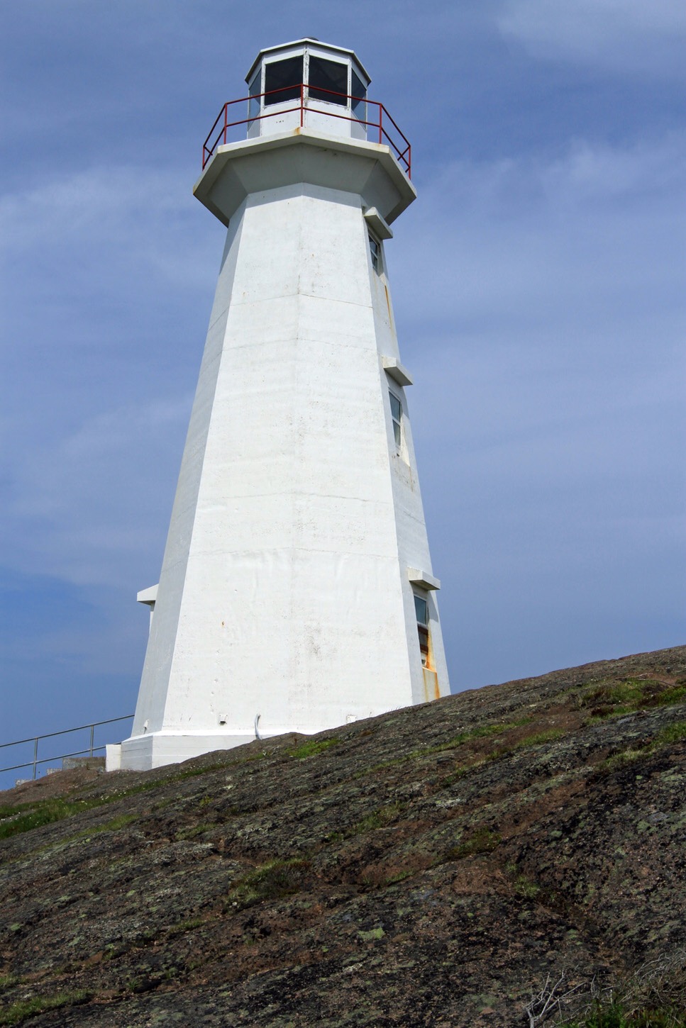 We were so pleased we went over there as we got much better views of the Cabot tower, the batteries and the port. You park the car and walk up the road to reach the lighthouse. From the lighthouse you can see the vertical strata of the steep rocks and cliffs of Signal Hill. There is a view of the path leading all the way from signal hill down and along the cliff to the battery and town .