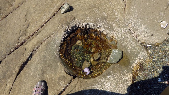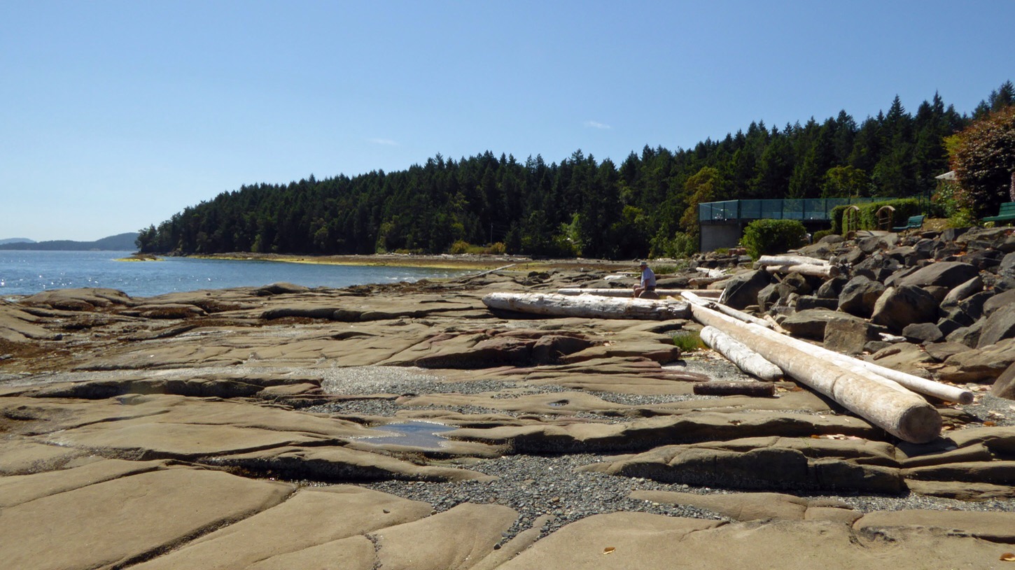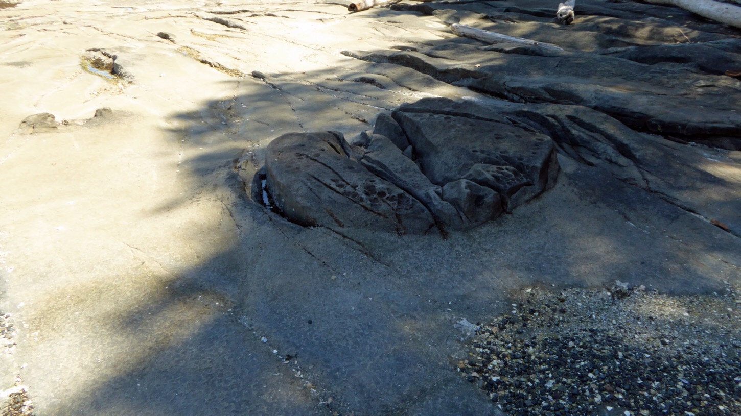We then went to spend most of the day at Blue Heron Park on Yellow Point. The tide was right out and we walked up to the private pier. The granite pavement has strange circular bumps and circles inset. We have decided they are fossilised tree trunks and an ancient forested area. There are 2 or 3 shiny rocks which look like the petrified logs we saw in Arizona.