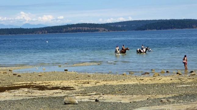 This beach is a treasure of a place. Beautiful scenery, forest behind, beautiful views over the sea, picnic tables and safe to swim in. Best of all hardly anyone there ! When we got too hot we sat on the washed up logs in the shade of the hillside behind the beach.