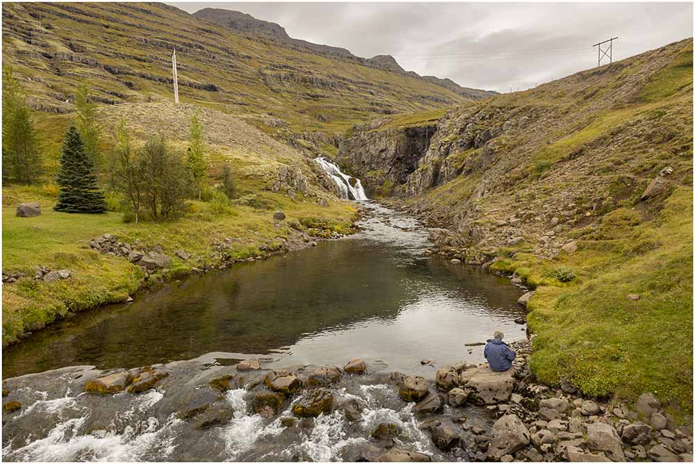 This is one of the waterfalls nearby by an electric station, the first hydro electric station introduced to Iceland. There are many walking trails in this valley and we were able to park near and walk down to the falls.