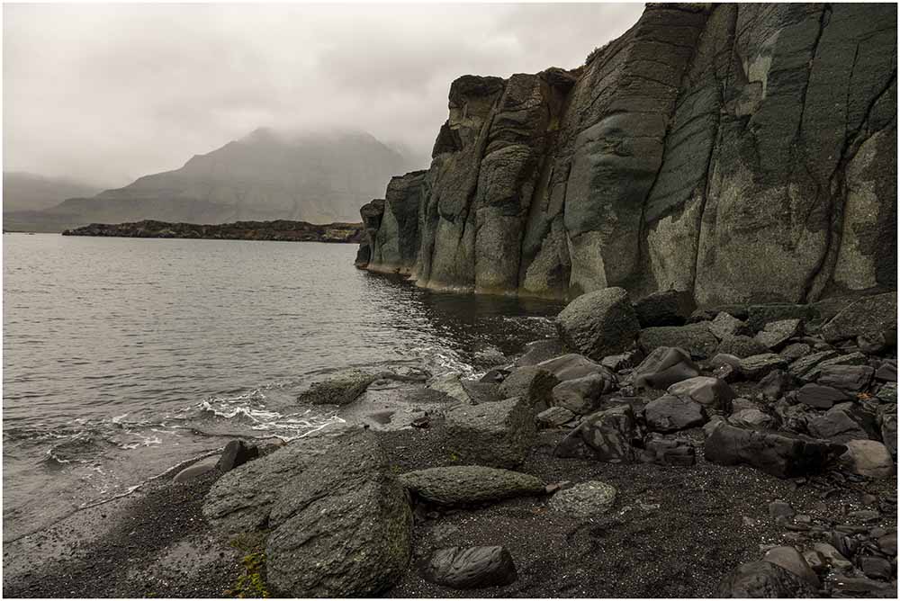 It is black sanddunes and striking cliffs. So many colours, orange green grey and topped with snow.