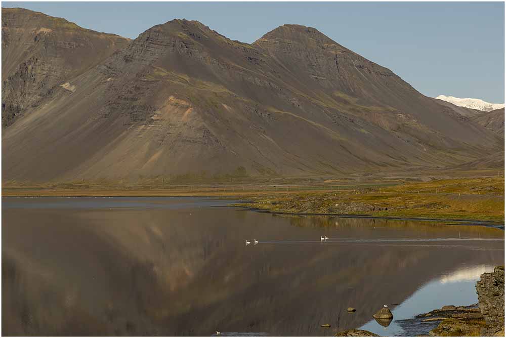 Back in Hofn we went to the harbour and it’s surroundings of marshland and islands. You can see the glacier so well from here.