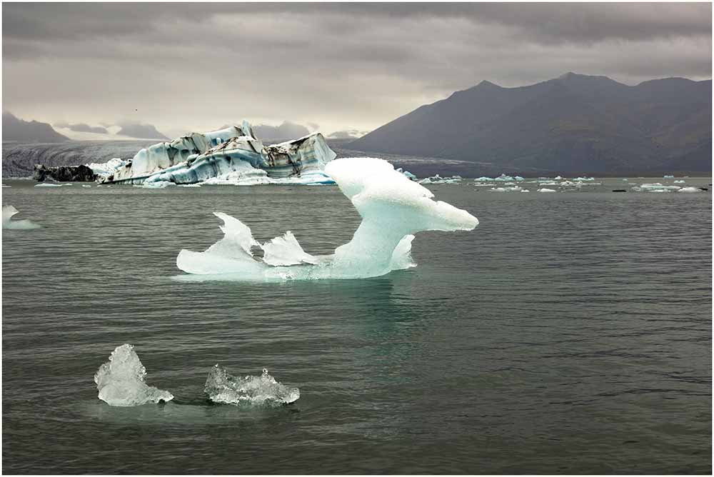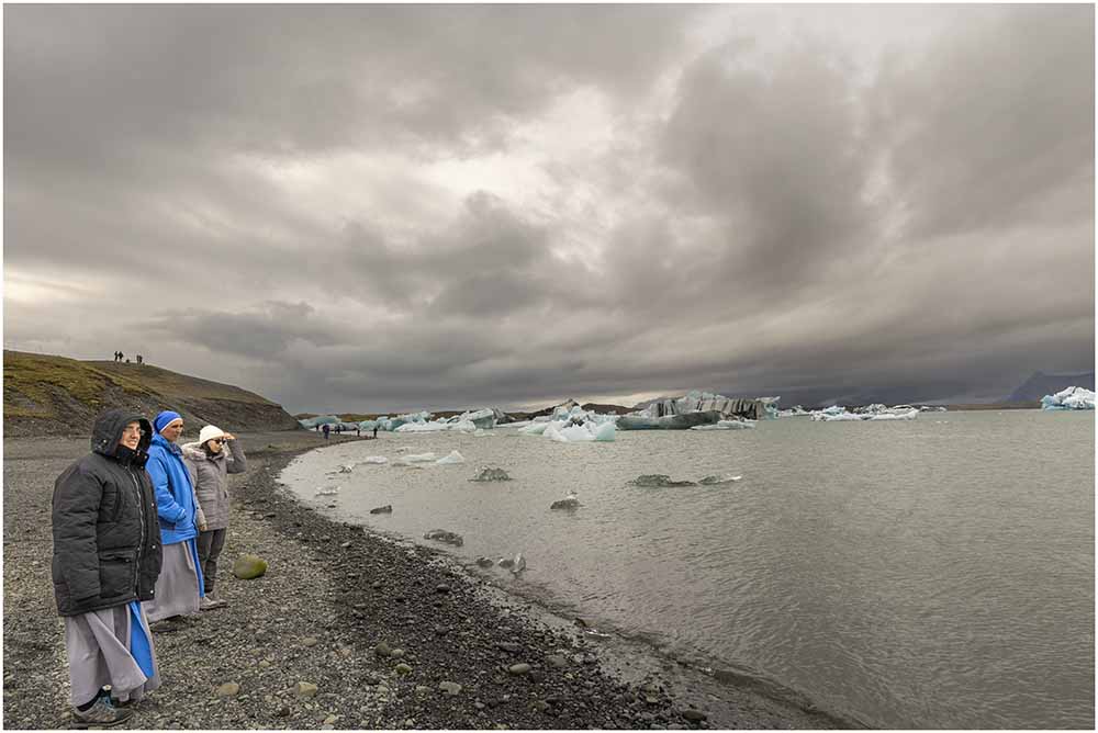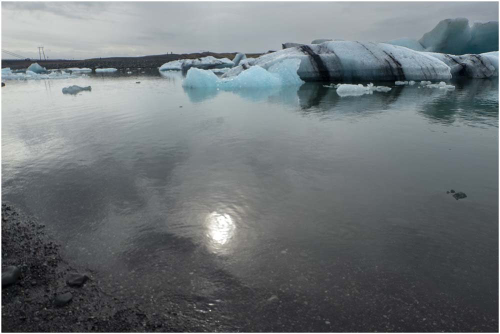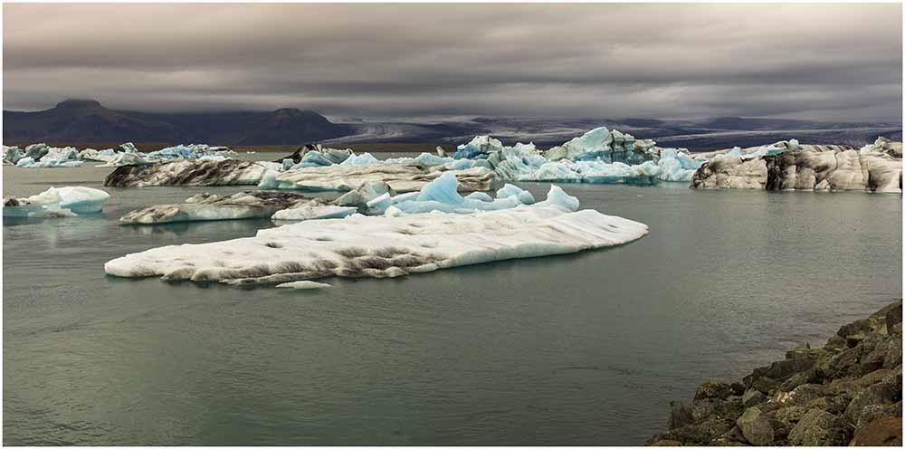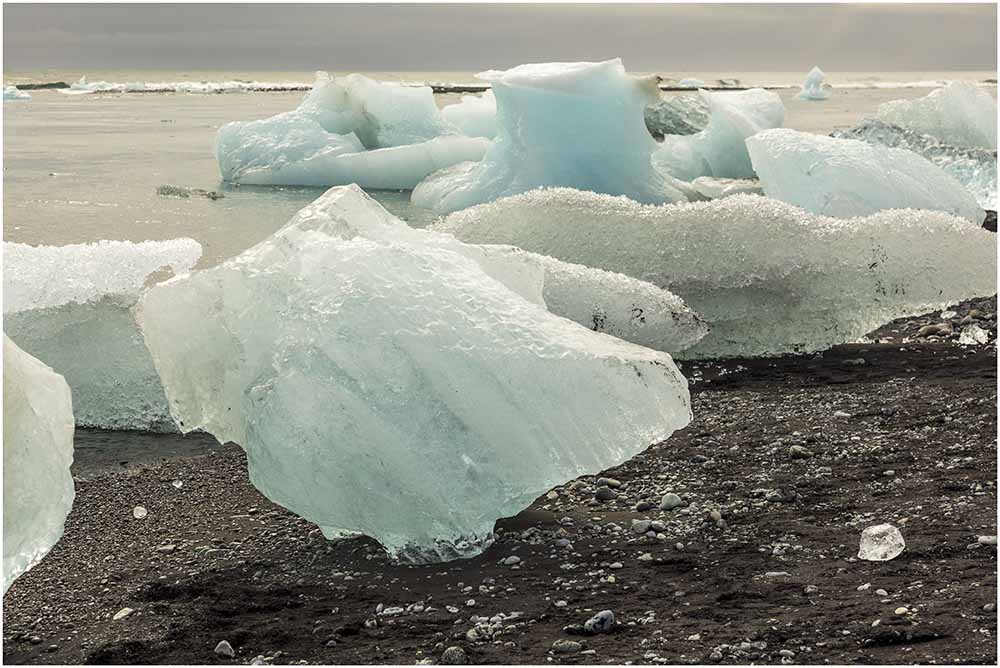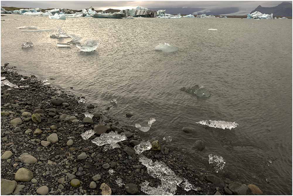 There were loads of icebergs calved off the glacier and lumps of ice from the icebergs floating at the edges. Amazing… the ice then is swept along the icy watery river into the sea at this point. Large pieces of ice wash up by the tide onto the black sands. This is diamond beach. We will return there tomorrow.