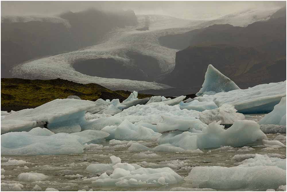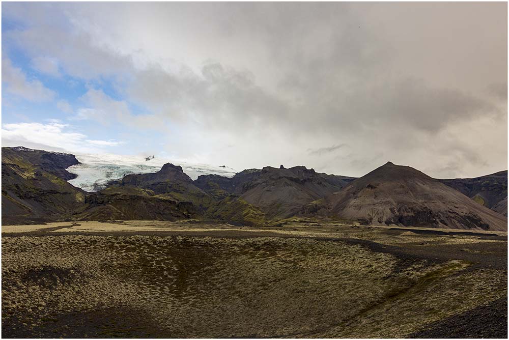 The huge glacier on top of the mountains is Vatnajokull. Each part off the glacier as it descends down valleys has different names.