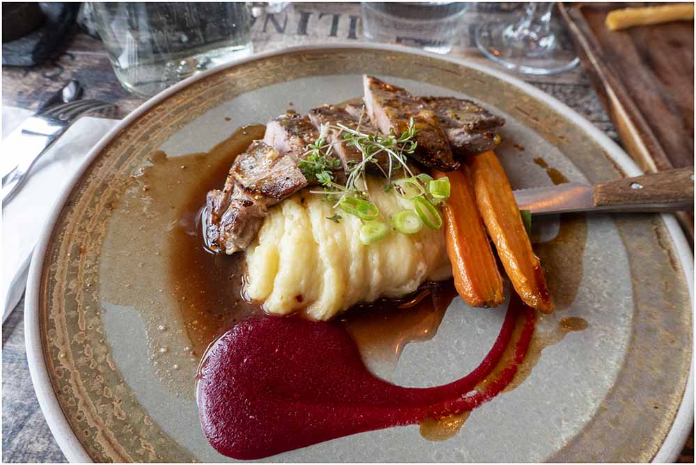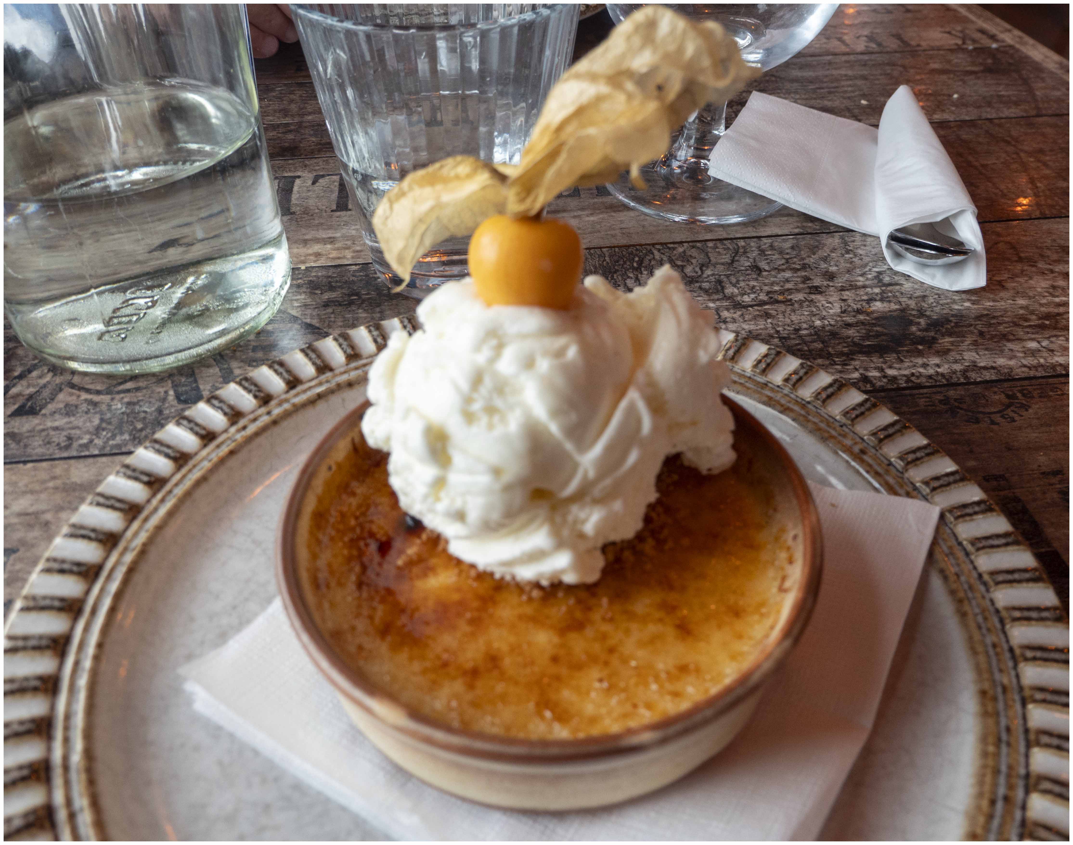 restaurant/cafe/bar. We treated ourselves to fish of the day dinner. It was a fish similar to cod they said. It was oven cooked,fresh and tasty. With rice noodles asparagus jus and kale with small potatoes.