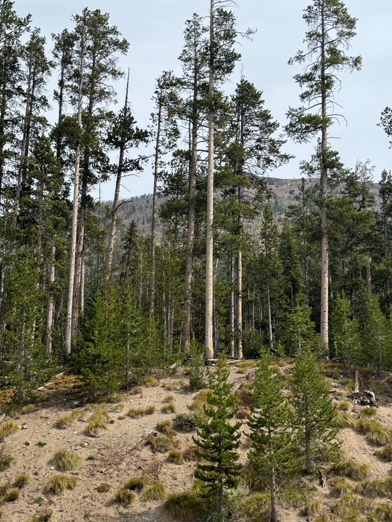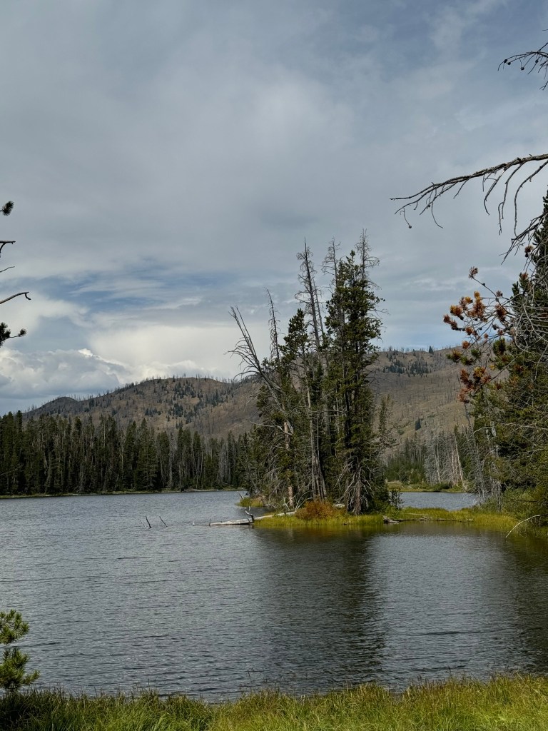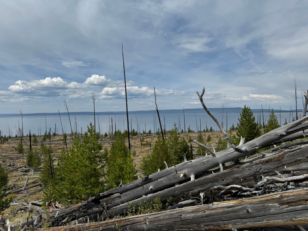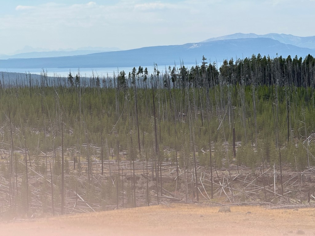 Now we were about to descend and stopped at an outlook over the great yellowstone lake. A lot of recent burnt tree damage here
