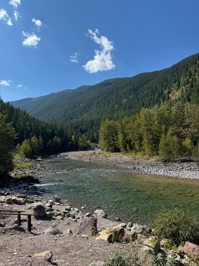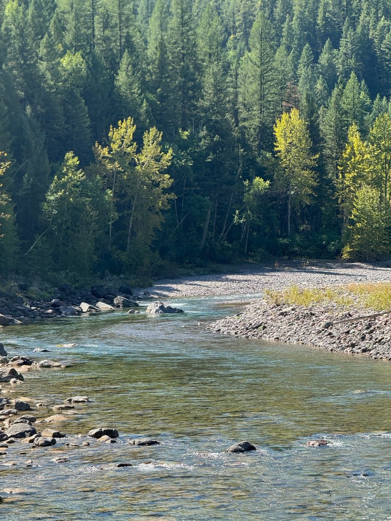 Izaac Walton lodge is an historic famous train stop for hikers. We explored here and had coffee and danish pastries