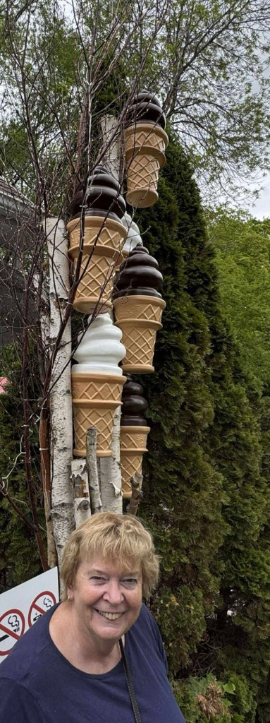 Parking this morning by the river, we decided to go to our now favourite coffee shop and indulge in crepes! We drank lots of water and coffee and poured the maple syrup over our 3 crepes. They are delicious. I still haven’t tried the Canadian puteen yet, though I’ll try to before I leave Canada.