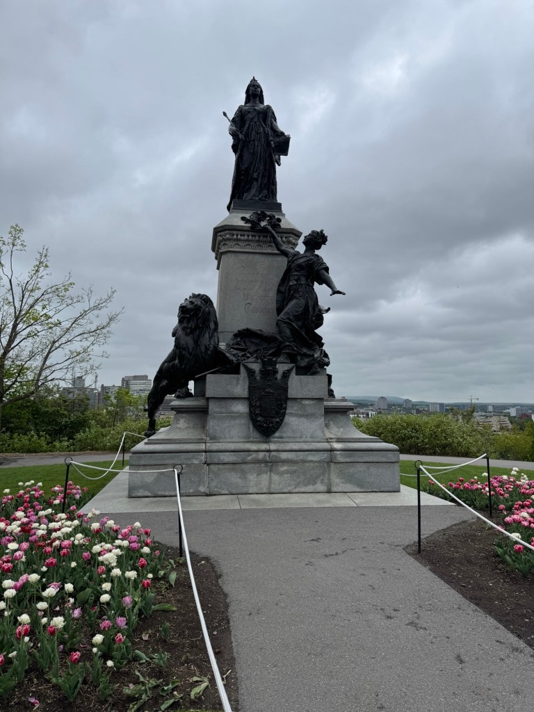 So ….Next we attacked the wooden steps leading up to the park and plains of Abraham. It was quite a climb and the path lead all along the cliffside up and sometimes annoyingly down then up again eventually to the citadel.