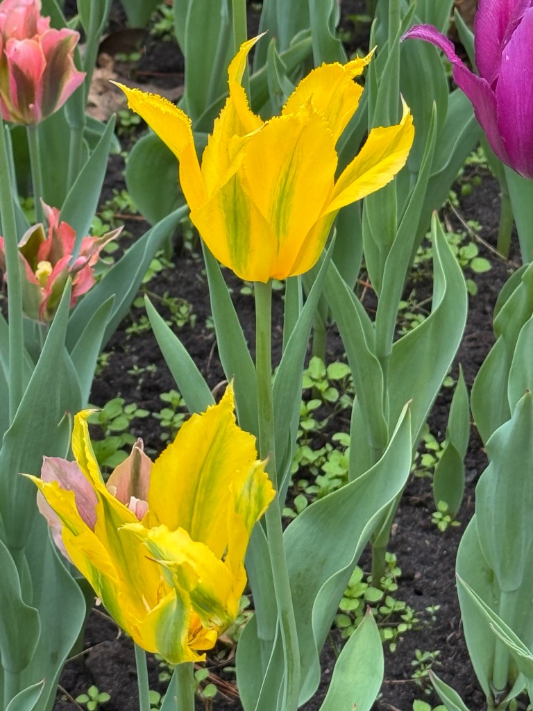 The place was all cleaned up and the brass on the harnesses polished and the carriage ready for Charles and Camilla to ride in. You should see all the preparations everywhere. They are going to block off all the side streets along the way he passes. We drove along there today as we went to see the fabulous tulips.