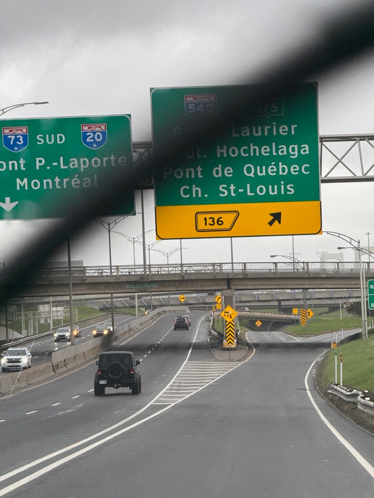 We crossed the bridge at Saguenay and eventually picked up the road highway 175 direct to Quebec City. 2 hours away. This road is dual carriageway all the way and rolling hills very pretty and easy to drive. There were warnings of moose all along here. Fortunately we didn’t have one run out in front of the car!