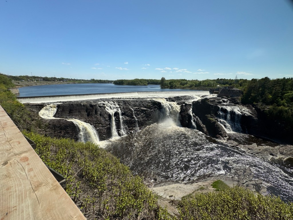 There is a small park over there next to a weir and a waterfall. Chaudieres Park