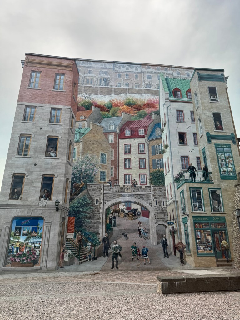 We saw a beautiful mural covering a side of a building. It depicts the history to present day of Old Quebec.