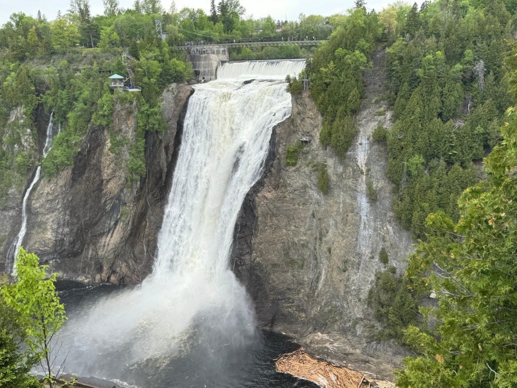 This afternoon we drove to close by Montmorency falls and got some stunning photos. The noise of the water was thundering. You can do a zip wire across, a gondola ride up, and also a foot bridge high over the falls. We chickened out!